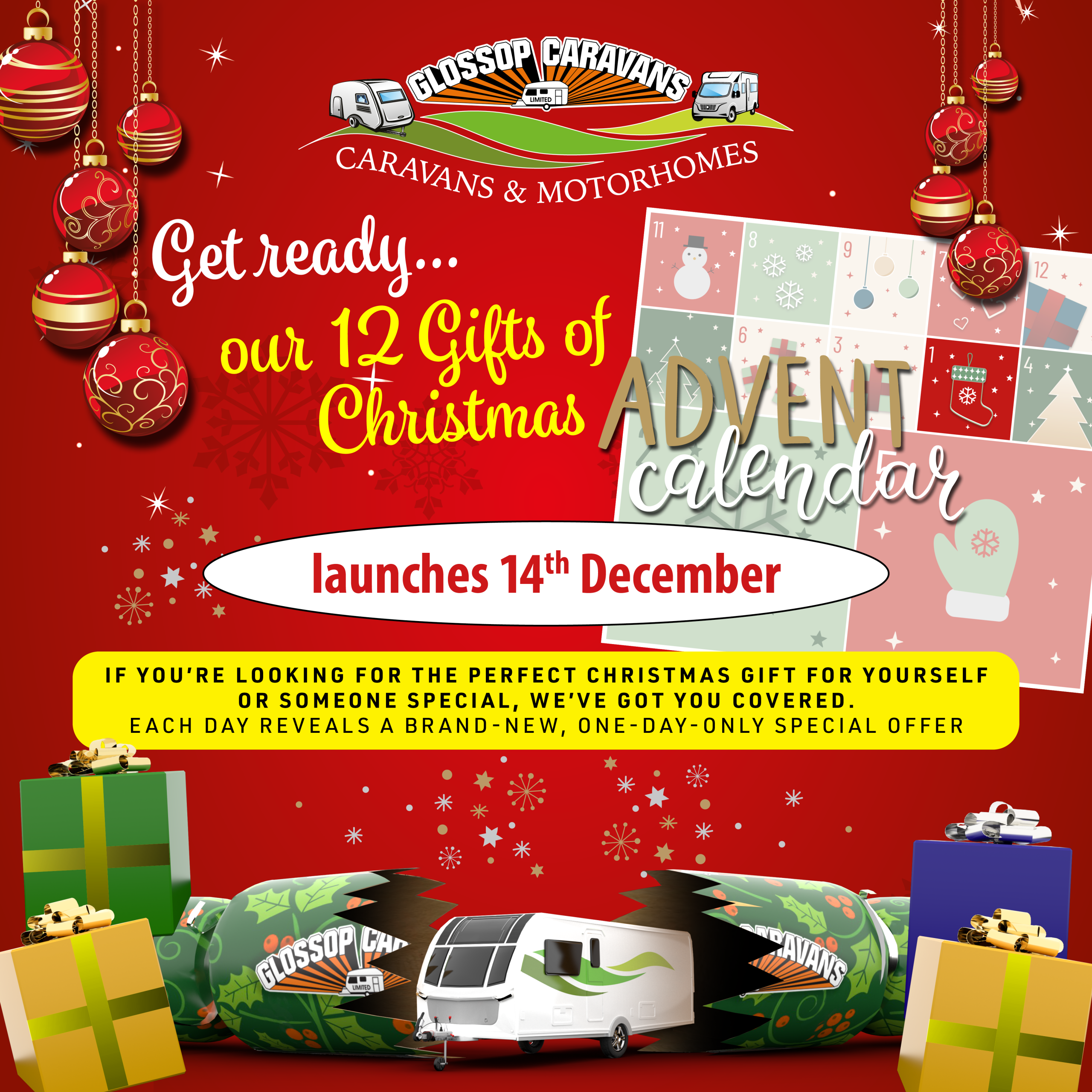This Christmas, Glossop Caravans is bringing extra festive excitement to caravan and motorhome owners with The 12 Gifts of Christmas — a special advent calendar packed with exclusive offers you won’t want to miss.