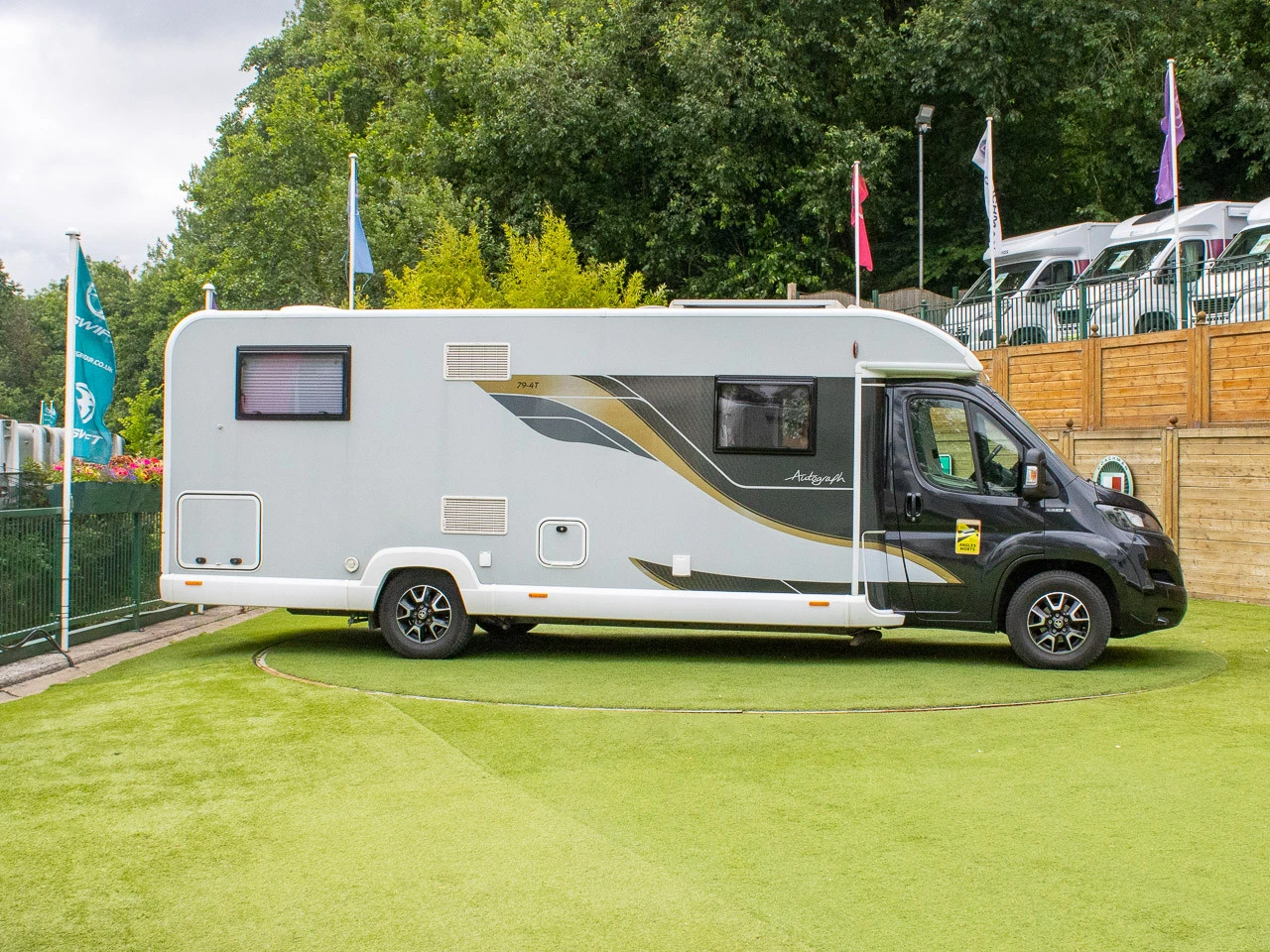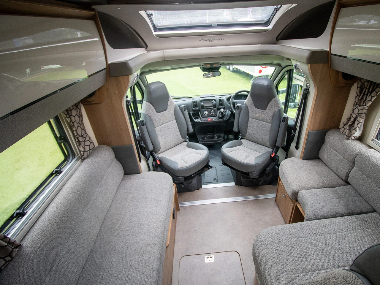 Bailey Autograph 79-4T 2020 - 4 Berth, 4 Seatbelts, Luxury Touring The 2020 Bailey Autograph 79-4T is a premium 4 berth motorhome with 4 travel seatbelts, offering a luxurious layout and top-quality features for comfortable and stylish adventures. Key Features: End Bedroom - A dedicated rear bedroom provides a private and relaxing retreat at the end of the day. Awning - A roll-out awning creates an extended outdoor living space, perfect for relaxing or dining. TV Aerial - Stay entertained on the go with a fitted TV aerial for reliable reception. Solar Panels - Roof-mounted solar panels provide off-grid power, ideal for extended stays. Fridge & Freezer - Keep your food fresh and well-stocked with a spacious fridge and separate freezer compartments. Oven & Microwave - Fully equipped kitchen with oven and microwave for convenient meal preparation wherever you are. 4 Berth, 4 Seatbelts - Designed for couples or small families, with safe travel seating and comfortable sleeping arrangements. 12-Month Warranty - Supplied with a 12-month warranty for complete peace of mind. Finance Available - Flexible finance options available, subject to status. The Bailey Autograph 79-4T 2020 combines style, practicality, and comfort, making it the ideal motorhome for both weekend getaways and extended touring adventures.